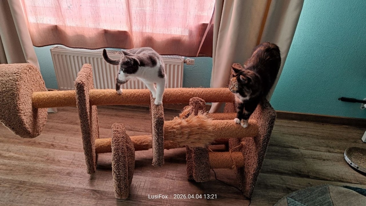 Не прошло и года! Наконец-то хозяева займутся перемоткой столбиков на стойке. А для Баси и Шуни - это уже что-то интересное и новенькое😂