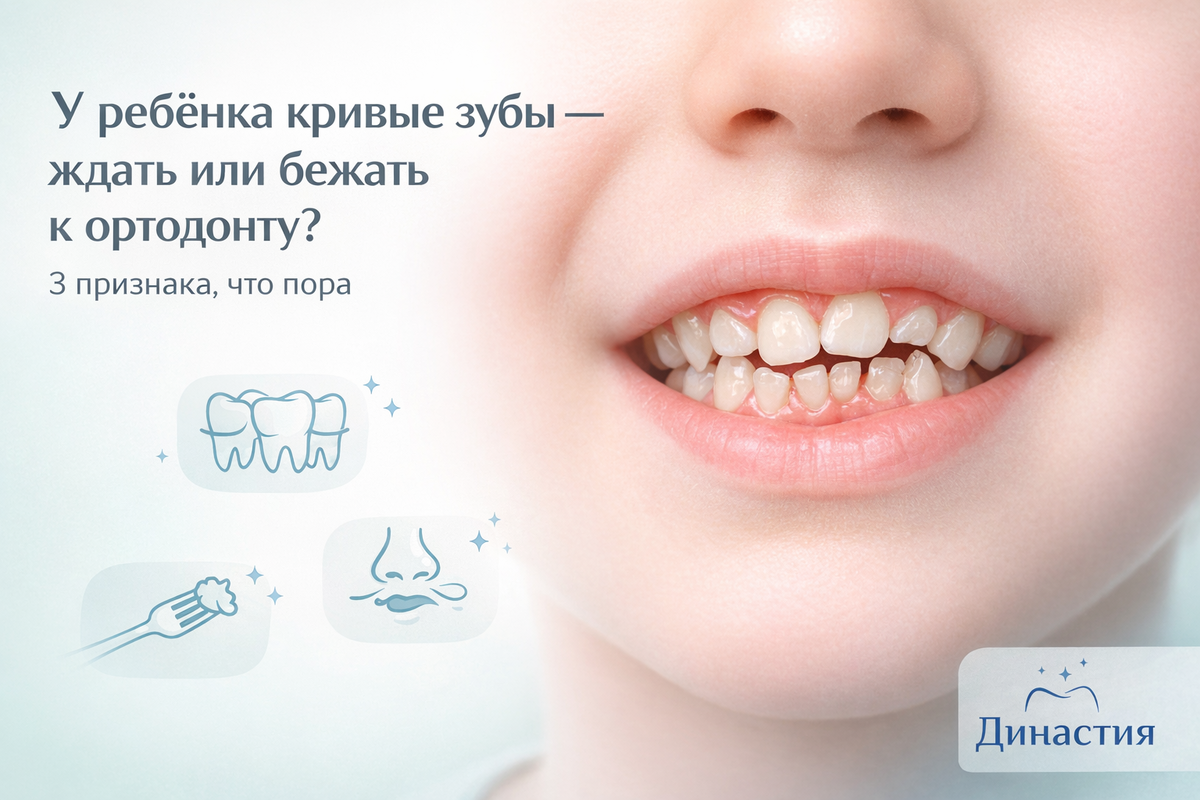 Детский ортодонт нужен когда зубы только начинают расти и вы видите: что-то не так. Дочке семь, передние зубы полезли вкривь, и все вокруг говорят разное. Свекровь: «перерастет». Подруга: «срочно к врачу», а педиатр пожимает плечами. Я расскажу про три конкретных признака, по которым мамы в Перми (и не только) могут понять самостоятельно, пора записываться или пока наблюдать. Молочные зубы с щелями между собой это норма. Больше того, эти щели нужны. Постоянные зубы крупнее молочных, и им нужно место. Если молочные стоят плотно впритык, вот это повод задуматься: постоянным будет тесно. Видите что у ребенка молочные зубы ровные, без промежутков, значит покажите ортодонту заранее, до начала смены. А вот когда в 6–7 лет начинается смена зубов и постоянные растут криво, «вторым рядом» или повернуты вокруг оси, это не «перерастет». Челюсть ребенка к этому возрасту активно развивается, но основные пропорции уже заложены, и само по себе ничего не выровняется. Ортодонт увидит, нужно ли вмешиват