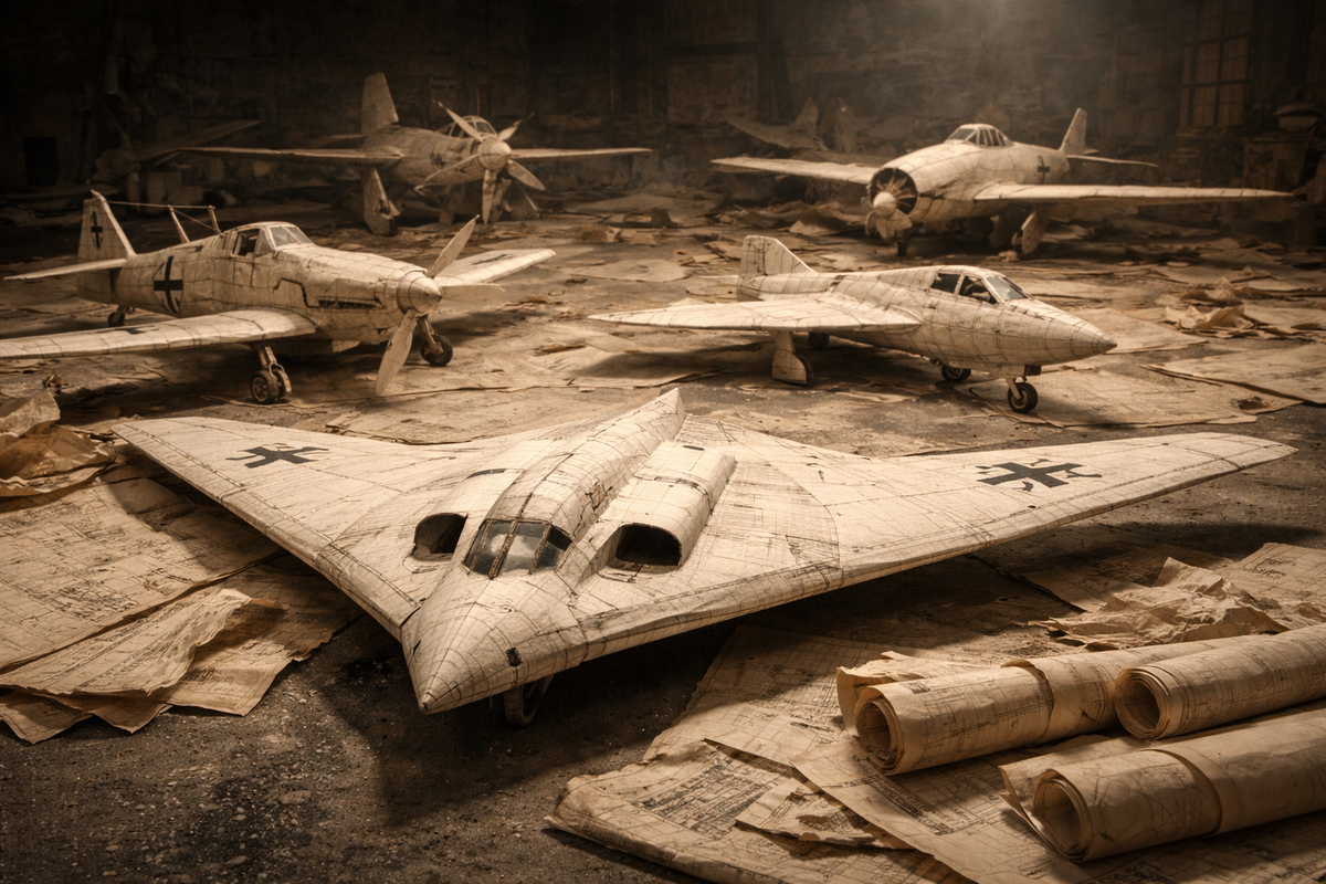 Легендарное «летающее крыло» с двумя реактивными двигателями Jumo 004 (такими же, как на Me 262). Первый полёт — 1 марта 1944 года (безмоторный планёр). В феврале 1945 года поднялся в воздух уже реактивный прототип. Машина была очень смелой: почти целиком деревянная (чтобы не использовать дефицитный алюминий), с радиопоглощающим покрытием — прообраз «стелс». Но война закончилась на стадии второго прототипа. Американцы вывезли чертежи и недостроенные машины, и идеи Хортена потом повлияли на Northrop B-2 Spirit.