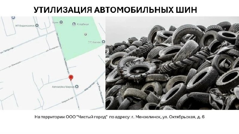 На территории базы ООО «Чистый город», расположенной по адресу: г.Мензелинск, ул.Октябрьская, д.6, осуществляется сбор автомобильных шин