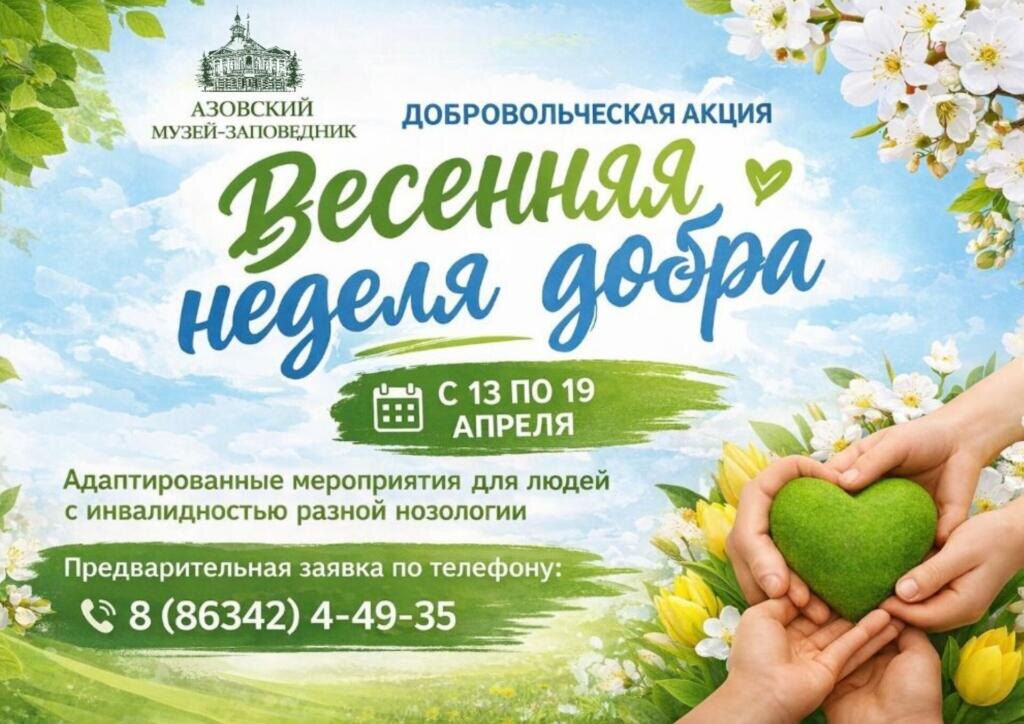 С 13 по 19 апреля в музее пройдет традиционная добровольческая акция «Весенняя Неделя Добра» Музей подготовил адаптированные мероприятия для людей с разными формами инвалидности: