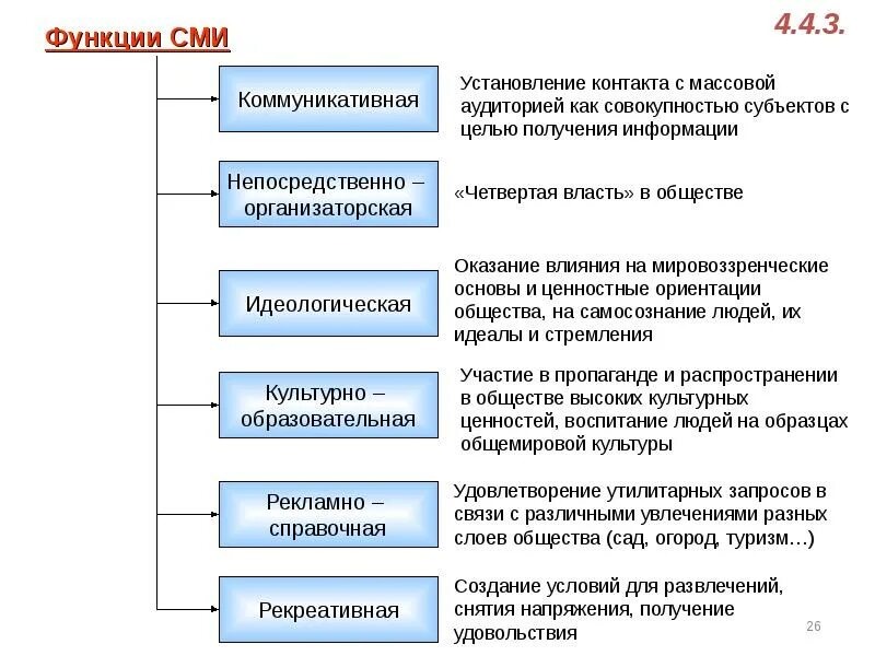 - доступность — информация СМИ понятна и доступна людям с любым уровнем образования и культуры;