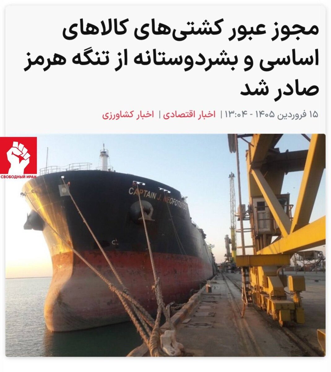 🚢 Иран разрешил проход через пролив кораблям с гуманитарными грузами и товарами первой необходимости. По решению правительства такие суда смогут идти к иранским портам и в близлежащие воды при соблюдении процедур. Список направили на согласование в профильные органы. Подпишитесь на канал