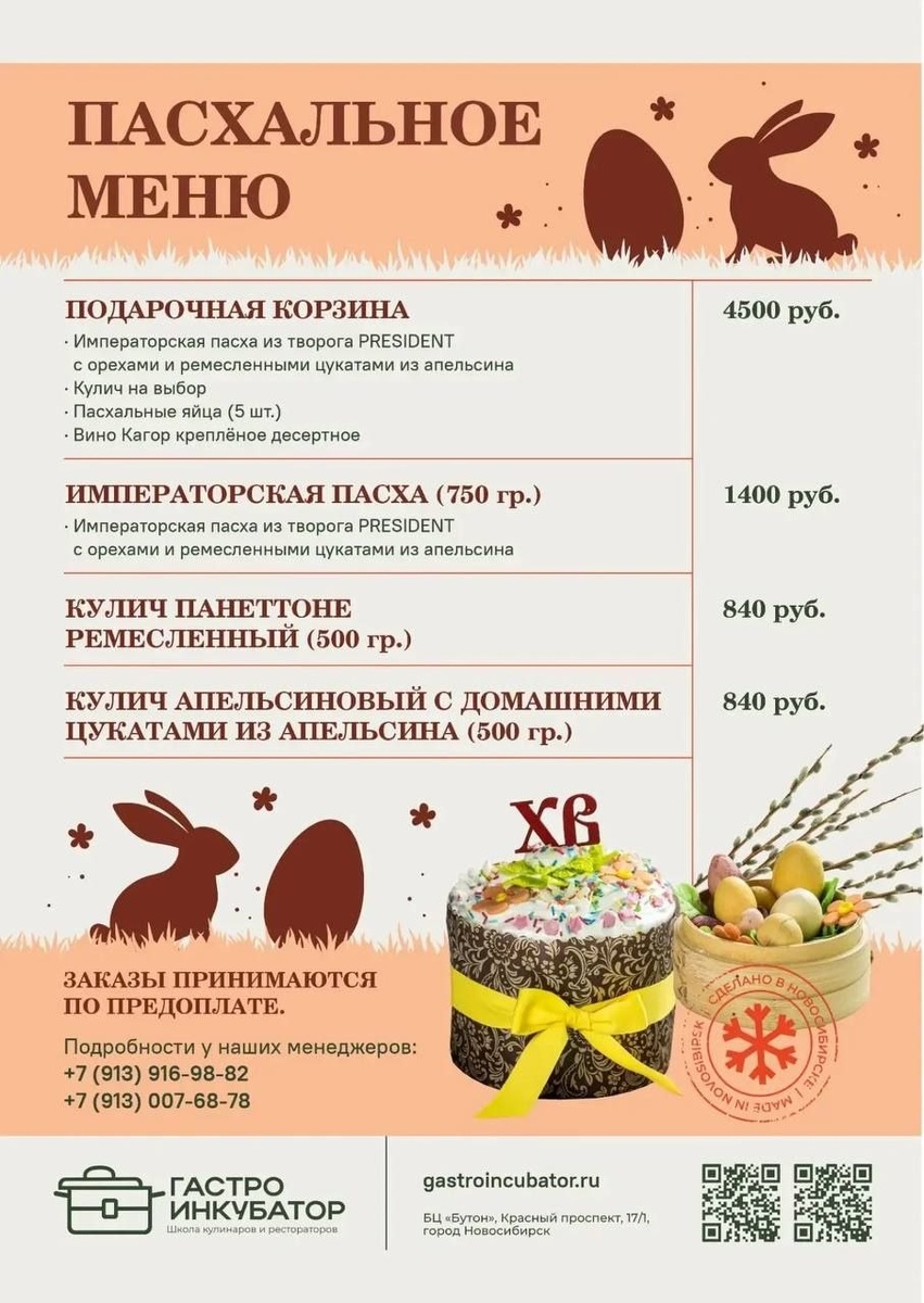 Принимаем заказы на творожные пасхи , куличи , подарочные корзины до 09 апреля ( четверг