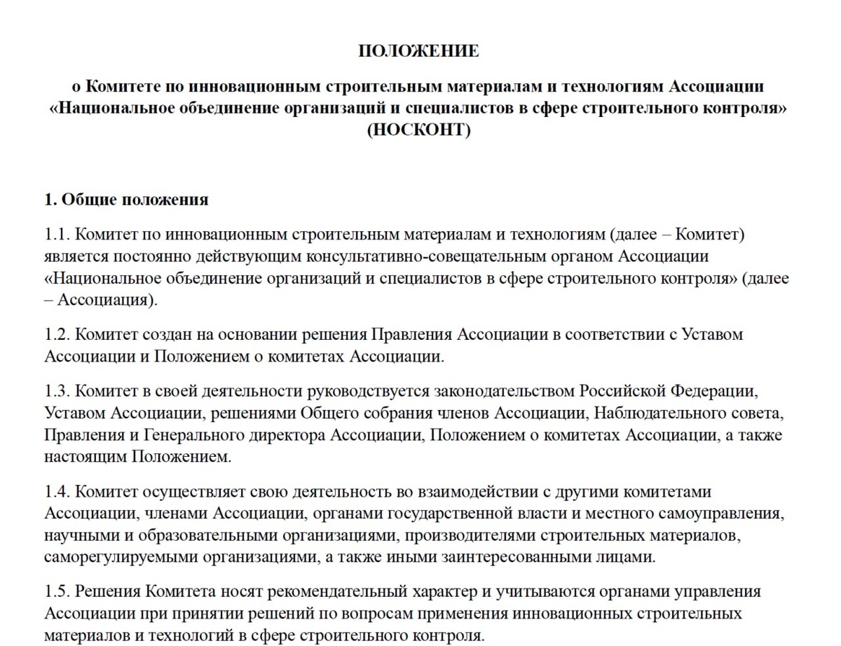 Комитет по инновационным строительным материалам и технологиям является постоянно действующим органом НОСКОНТ. Более подробно ознакомиться с документом можно в разделе ДОКУМЕНТАЦИЯ