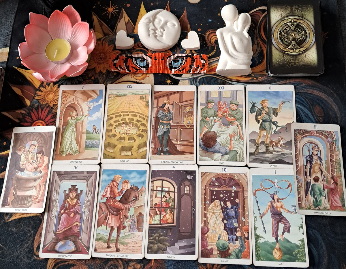 Дурак даёт вам абсолютную смелость начинать. Вы не парализованы перфекционизмом. Если что-то нужно сделать, вы прыгаете, а инструкцию пишете по пути. А Маг говорит, что за этой внешней наивностью стоит способность концентрировать реальность — вы берёте намерение, фокусируете волю, и мир подстраивается.