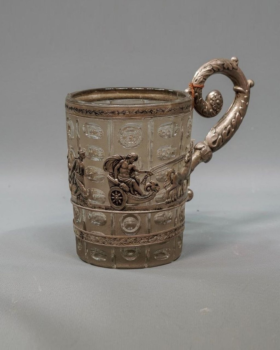 ! 😄 На этом снимке из собрания ГИМ мы видим экспонат, который сохранился лучше, чем некоторые наши воспоминания о школьных уроках. Эта стеклянная кружка, обрамленная серебром, была создана в Санкт-Петербурге в 1830-х годах. Удивительно, но она чудом дошла до наших дней! Как будто сама история решила сохранить этот шедевр для нас!