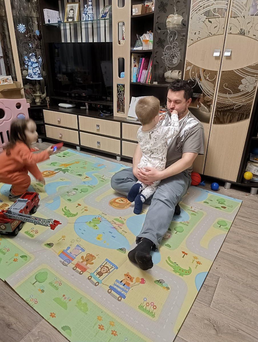 Двойняшки сегодня проснулись почти в восемь, разоспались что-то. Оба, проснувшись, помчались папу будить. Забрались к нему на кровать, выудить их оттуда не представлялось возможным.