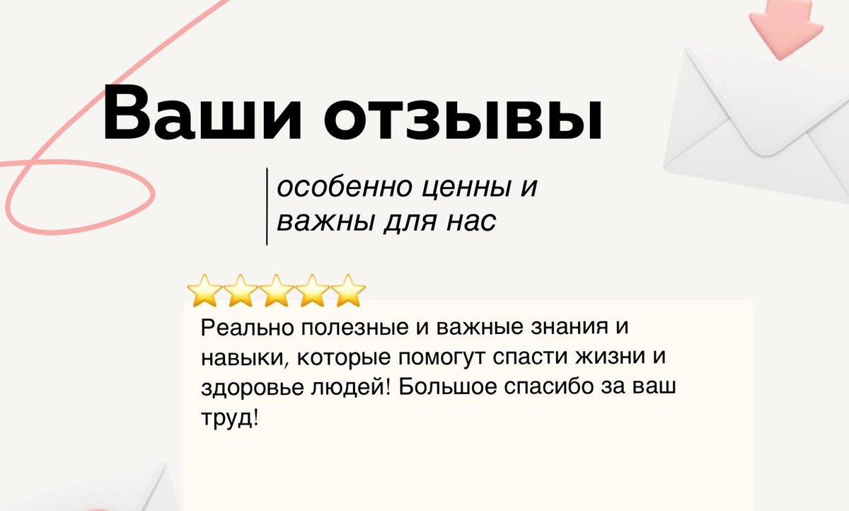 Мы очень бережно относимся к каждому отзыву✨ Это не просто слова благодарности, а искренние истории людей, которые решили научиться важному. Истории о том, как страх и неуверенность уступают место спокойствию и чёткому пониманию: в нужный момент я не растеряюсь.🫂 Такая обратная связь вдохновляет нас идти дальше и делать курсы ещё лучше. Спасибо, что доверяете нам своё обучение.❤️🩹