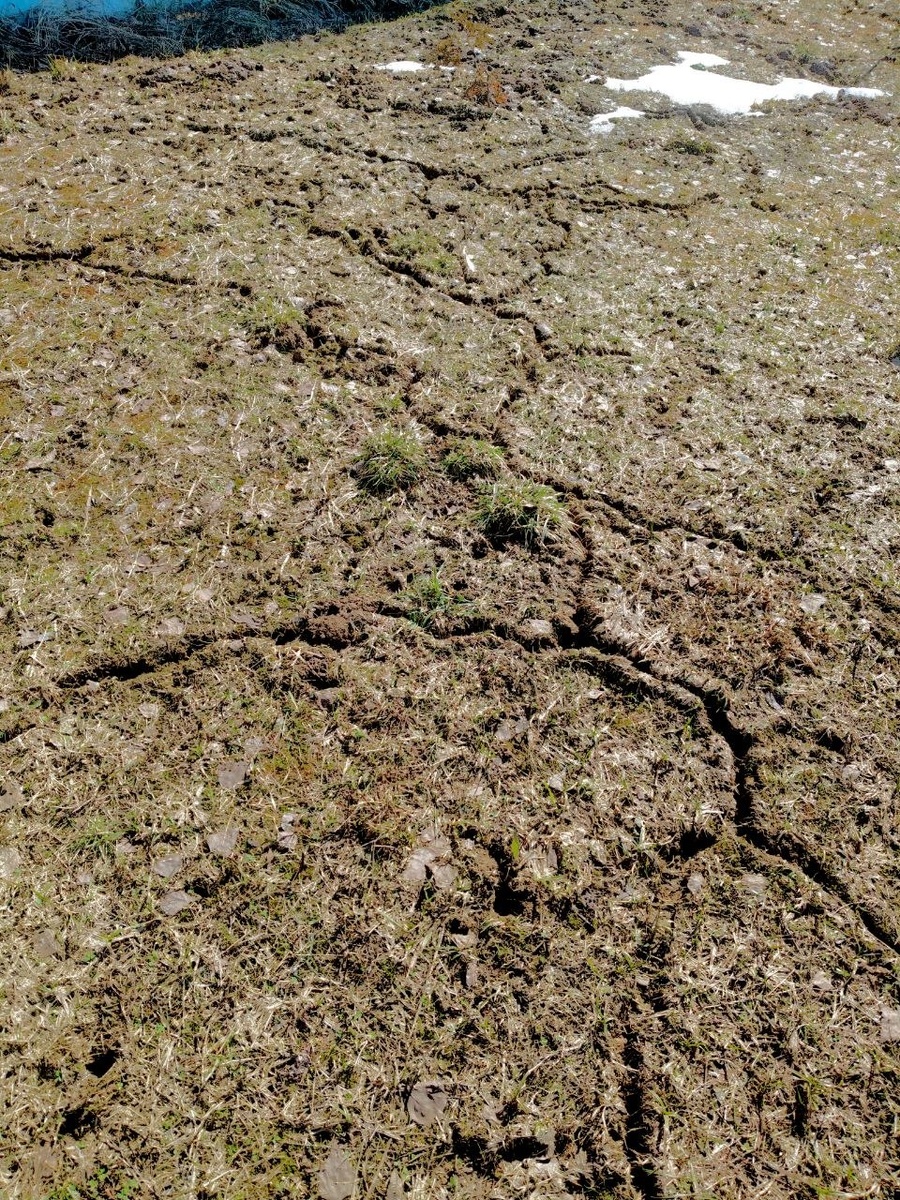 🏡 Снега уже почти нет, осталось совсем немного - близ забора. Свой креатив в дизайн территории внесли мыши: везде траектории их подснежных ходов и даже... их уютные гнёздышки из травы!