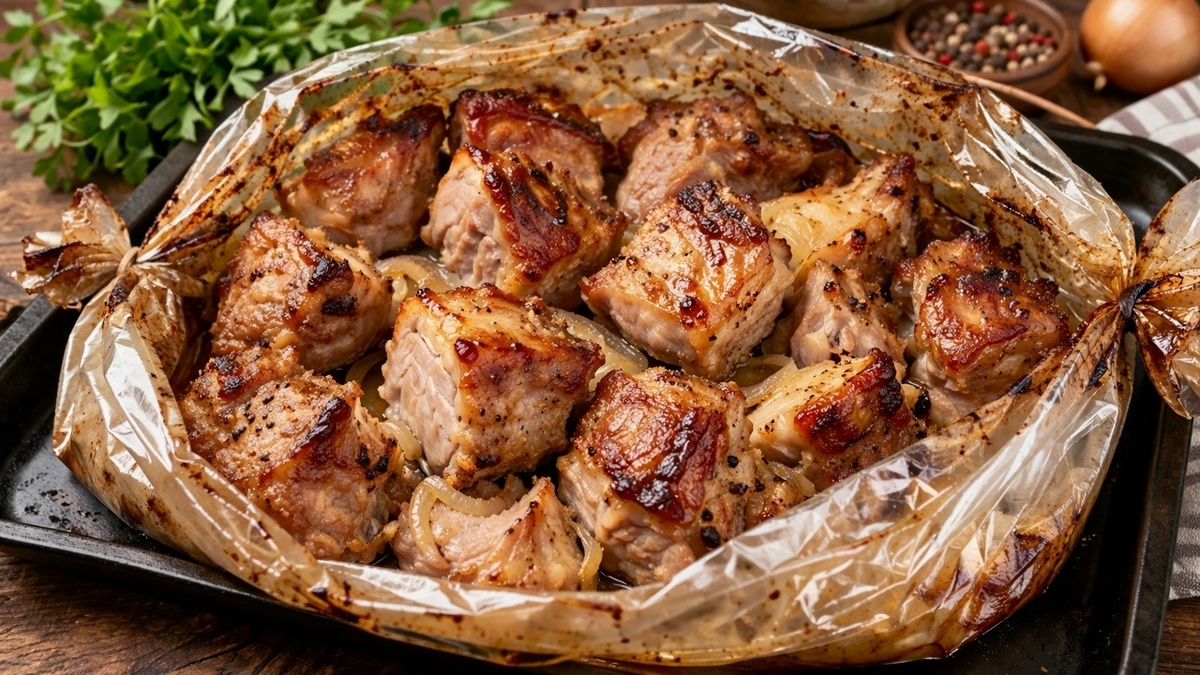 Иногда хочется приготовить мясо так, чтобы получилось без лишних усилий, но при этом вкусно и по-настоящему сочно. Не стоять у плиты, не следить за каждой минутой, а просто сделать один раз и быть уверенной, что всё получится. У меня для таких случаев есть один проверенный вариант. Свинина в рукаве. Причём не цельным куском, а именно кусочками, так она получается мягче и пропитывается лучше. И каждый раз результат один и тот же. С этим рецептом всё максимально просто, но именно в этом его плюс. Мясо готовится в собственном соке, без лишнего вмешательства. Лук даёт аромат и влагу, рукав удерживает всё внутри и в итоге ничего не пересыхает. Даже если немного передержать, оно всё равно остаётся мягким. И это как раз тот случай, когда не нужно ничего усложнять. Берём самые обычные продукты: Можно добавить любимые специи, но даже в таком простом варианте вкус уже получается насыщенным. Через час аккуратно раскрываем рукав. Повышаем температуру до 200–210 градусов и возвращаем мясо в духовку