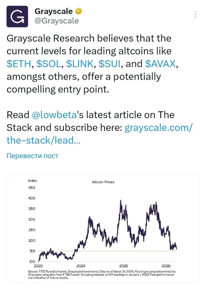 Аналитики Grayscale Research призывают покупать ETH, SOL и AVAX: эксперты называют текущие уровни «идеальными» для входа