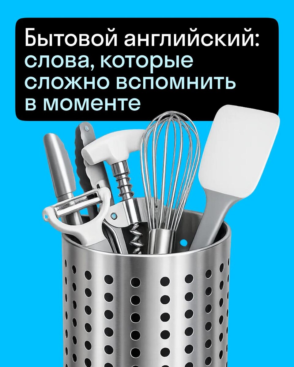 Попробуйте вспомнить, как на английском будет вантуз. Штопор? Может, тёрка? А ведь эти слова иногда так нужны в повседневной жизни. Собрали всё это в карточках, чтобы вы не говорили каждый раз: «Как его там…». 🤩 А если хотите увереннее чувствовать себя в разговоре, то самое важное — знать базовую лексику. Мы собрали 1000 самых распространённых английских слов и оформили их в формате комикса, чтобы запоминать было легче. 🎁Скачивайте бесплатно по ссылке: https://go.skyeng.ru/04words04tg ❤️🔥 Тормозит Телеграм? Подписывайтесь на нас ВКонтакте.