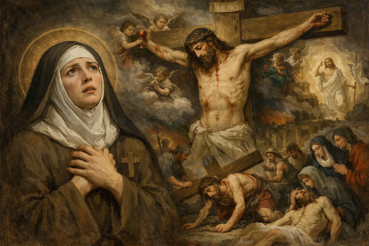 Анджела из Фолиньо (ок. 1248–1309) – терциарка францисканского ордена, прозванная современниками «учительницей теологов». Её «Книга видений и наставлений» – не академический труд, а дневник горения души, записанный пером исповедника с её собственных слов. В конце ХХ века была причислена к лику святых. Анджела прошла через мирскую роскошь, через тяжкую скорбь утрат, через долгий покаянный плач – и наконец обрела Бога не в отвлечённых догматах, а в самой глубокой тайне, доступной человеческому сердцу. Вот слова, которые она слышала в своем сердце: «Дочь Моя, сладостная Мне, люби Меня, ибо любима ты более, чем можешь любить Меня. Любимая Моя, люби Меня». И говорил Он: «Безмерна любовь, которую чувствую Я к душе, любящей Меня без зла». Путь к познанию этой любви вел через глубочайшее покаяние и смирение: Чем больше душа, падая вниз, сравнивается с землей, скудеет и смиряется, тем больше она приуготовляется и очищается, дабы подняться выше; ибо ни одна душа не может подняться иначе, как чер