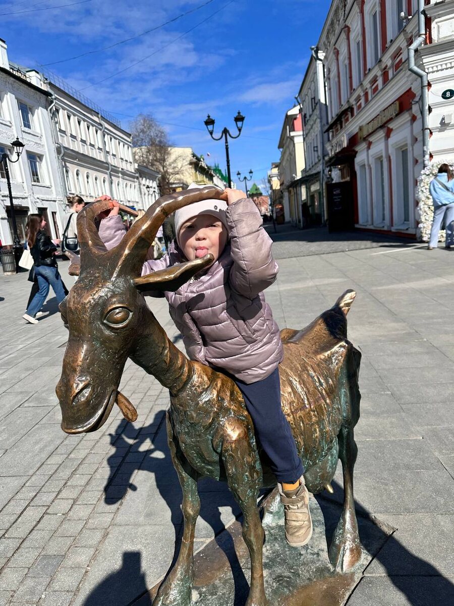 Подходит мужчина. — Вы фотографироваться? — спрашиваю его. Эта коза стоит на главной улице Нижнего Новгорода и к ней обычно очередь, чтобы сфоткаться. — Нет, я потрогать… чтобы деньги отсыпала. А то закончились почти, — отвечает мужчина и наклоняется к вымени козы. Потом он жену отправил вымя трогать, чтобы наверняка 😅 Живу в Нижнем, и только сегодня узнала, что коза волшебная. На всякий случай тоже с Аней вымя потерли. Не каждый день деньги обещают за простое действие. Но это не конец истории. Идем дальше, гуляем, через несколько часов приходит уведомление. Достаю телефон, смска от Сбера с пополнением баланса. Папа неожиданно прислал деньги с пометкой «небольшой презент на Пасху». Работает козочка 😁 Если вы в Нижнем, то теперь вы тоже знаете, как быстро восполнить денежный запас)