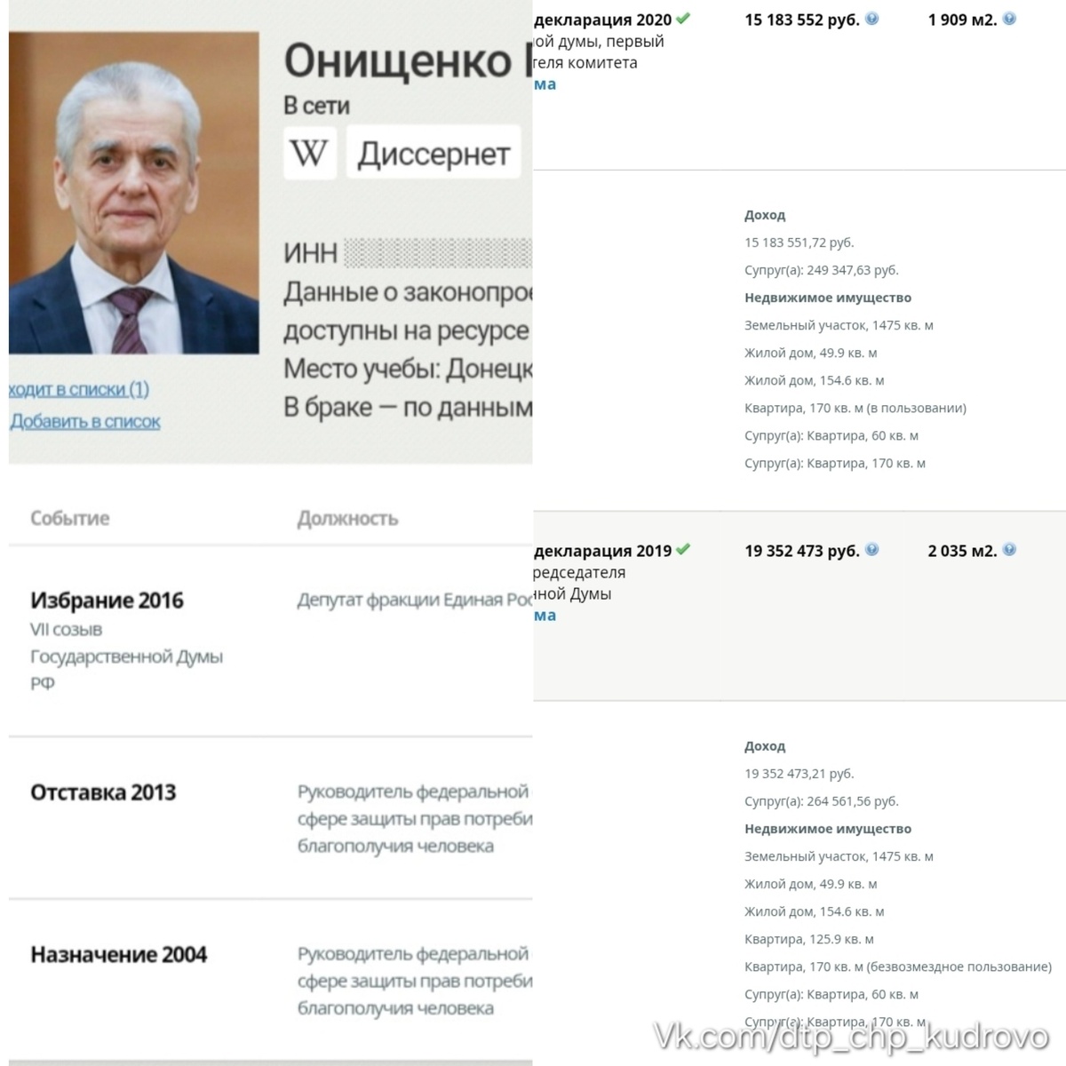 » Народный депутат Геннадий Онищенко решил, что пяти дней в неделю нам маловато, и горячо поддержал идею «шестидневки». Его рецепт счастья прост: работать нужно «на износ». Правда, «износ» у всех выглядит по-разному. Мы заглянули в декларации и выяснили, что сам народный избранник «упахивается» в депутатском кресле за 1,5–2 миллиона рублей в месяц. А чтобы отдыхать от тяжких дум о народе, у него припасена элитная недвижимость на сотни миллионов рублей. Видимо, депутат так сильно устает выдумывать новые рабочие дни, что на меньшее не согласен. ДТП и ЧП Кудрово