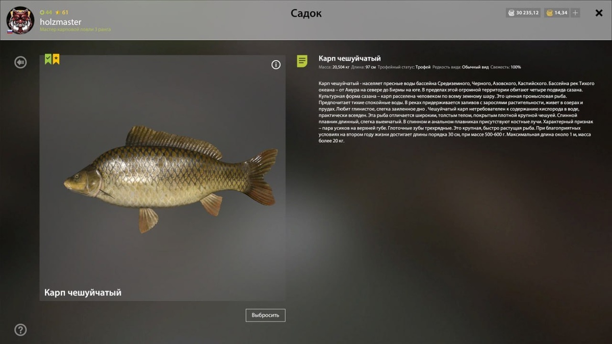 🐠 Карп чешуйчатый троф 🏆