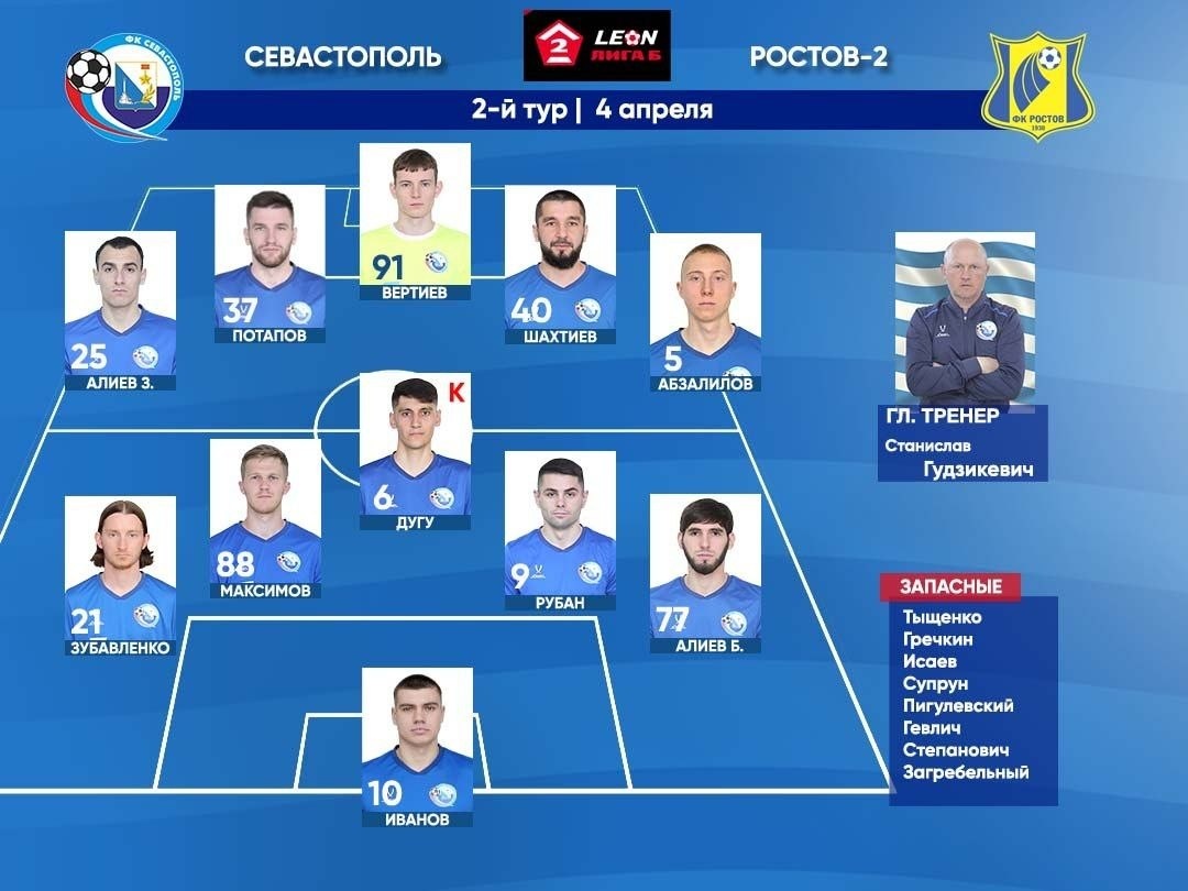 Состав ФК «Севастополь» на матч с ФК «Ростов-2»