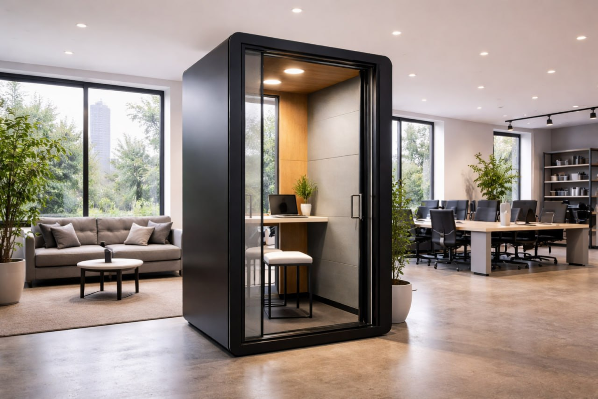 Современный офис давно перестал быть только местом с рабочими столами и переговорками. Сегодня пространство должно поддерживать разные сценарии работы: созвоны, фокусную работу, короткие встречи, конфиденциальные разговоры и онлайн-коммуникацию. Именно поэтому всё чаще в офисах появляются акустические кабины. Акустическая кабина для офиса — это отдельное звукоизолированное пространство, предназначенное для работы, переговоров, телефонных звонков, видеоконференций и задач, требующих концентрации. По сути, это мини-комната внутри офиса, которая помогает решить одну из главных проблем open space — шум и отсутствие приватности. Акустические кабины бывают: Открытые офисы удобны для командной работы, но плохо подходят для задач, где нужна высокая концентрация. Посторонние разговоры, звонки, движение сотрудников — всё это снижает фокус и мешает работе. Акустическая кабина создаёт пространство, где можно спокойно: Видеозвонки, созвоны с клиентами, собеседования, внутренние обсуждения — всё это
