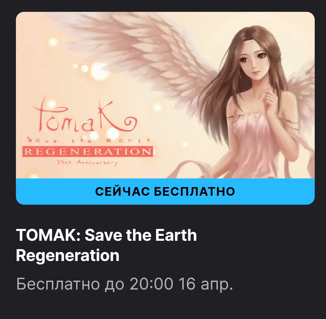 Первая – TOMAK: Save the Earth Regeneration – милый платформер про спасение планеты. Раздача действует до 16 апреля.