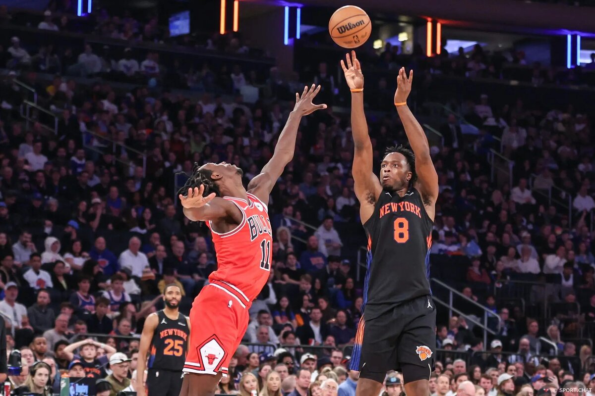 «Нью-Йорк Никс» устроили настоящий разгром «Чикаго Буллз», победив со счётом 136:96 и не оставив сопернику ни единого шанса. Матч был фактически решён уже в самом начале — «Никс» выдали мощнейший старт, уйдя в отрыв 20:1 и больше ни разу не позволили «Чикаго» вернуться в игру. Главным героем встречи стал О Джи Ануноби, набравший 31 очко и реализовавший 7 из 10 трёхочковых. Существенный вклад также внесли Митчелл Робинсон (17 очков и 11 подборов) и Джейлен Брансон, оформивший дабл-дабл — 17 очков и 10 передач. «Никс» полностью доминировали по всем показателям — реализовали более 50% бросков с игры, уверенно выиграли подборы и воспользовались потерями соперника, набрав 28 очков после ошибок «Буллз». Для «Чикаго» это поражение стало очередным ударом — команда продолжает проваливать концовку сезона и фактически выпала из борьбы за плей-офф.