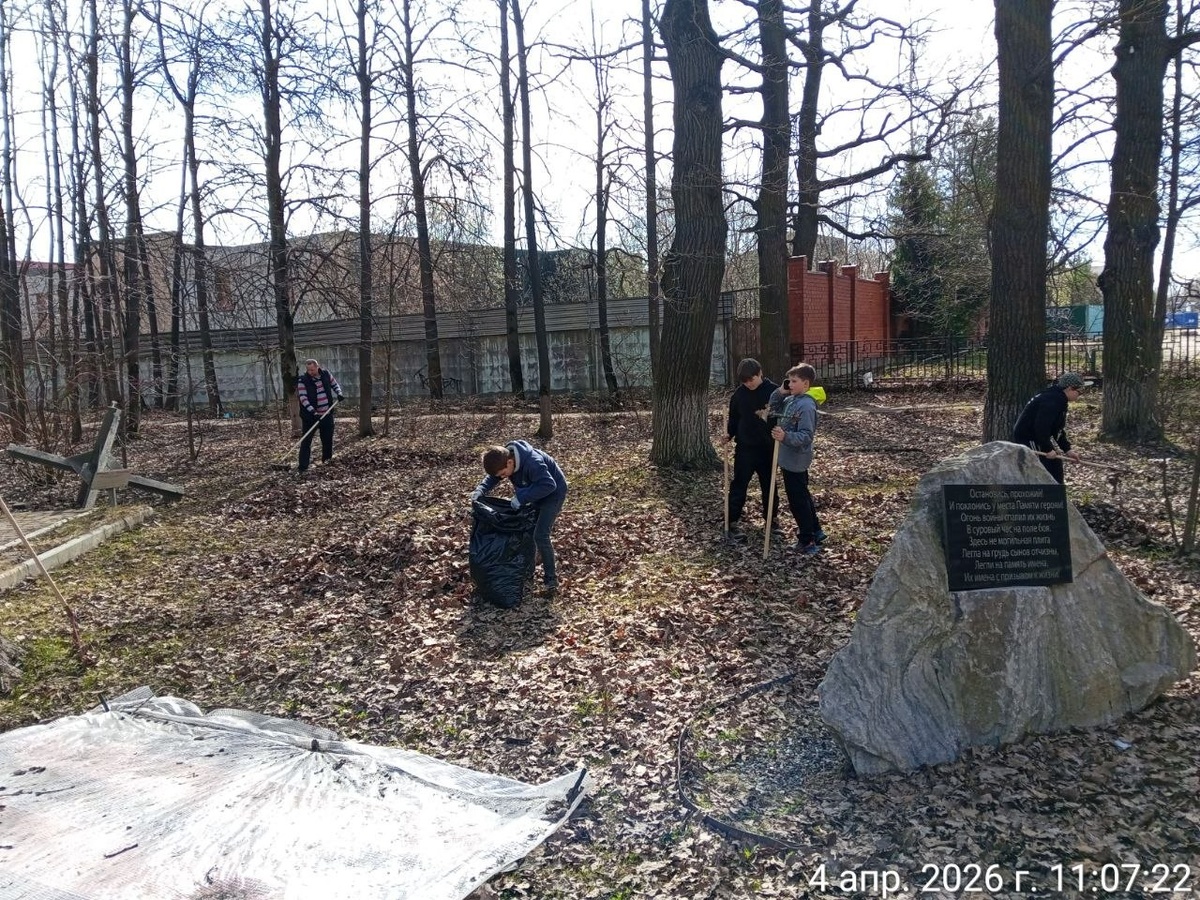 Фото с уборки территории возле памятника погибшим героям Великой Отечественной Войны 1941-1945