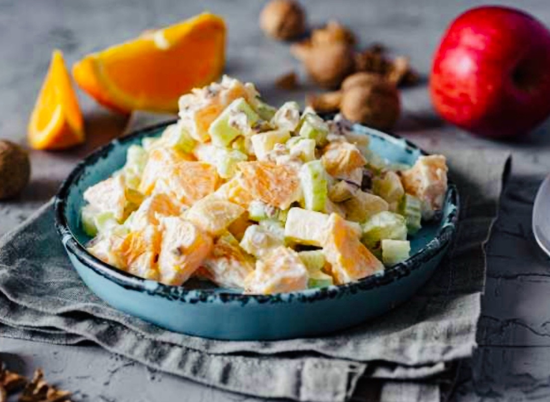 Иногда интересный вкус получается не за счёт сложных рецептов, а благодаря удачному сочетанию простых ингредиентов. Этот салат — пример того, как привычные продукты могут заиграть по-новому. Сельдерей, яблоко и апельсин создают контраст вкусов и текстур: свежесть, сладость и лёгкую кислинку. Сельдерей нарежьте тонкими кусочками. Апельсин очистите от плёнок и разделите на небольшие дольки. Яблоко нарежьте тонкой соломкой или небольшими кусочками. Соедините все ингредиенты в миске. Добавьте йогурт или сметану, щепотку соли и немного лимонного сока. Аккуратно перемешайте. Салат сочетает хруст сельдерея, сладость апельсина и лёгкую кислинку яблока. Заправка объединяет ингредиенты и делает вкус более мягким. Перед подачей можно добавить немного орехов. Это добавит текстуру и сделает вкус более насыщенным. Это простой вариант салата, который отличается от привычных сочетаний. Он подойдёт тем, кто хочет добавить в меню что-то более свежее и разнообразное.