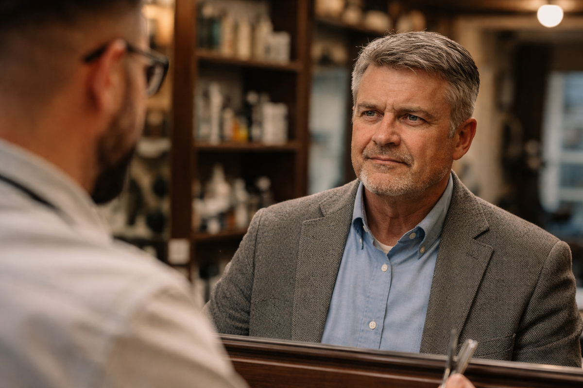 Про то, что даже старый отец — не семейное приложение и не общая привычка. Что у него может быть шея, которую хочется аккуратно окантовать. Рубашка, которую он выбирает не по принципу «и так сойдёт». Женщина, рядом с которой он не стесняется сидеть прямо. День, который он не отдаст под внуков, если не хочет. И жизнь, которую он не обязан доживать в выражении лица «мне уже ничего не надо».