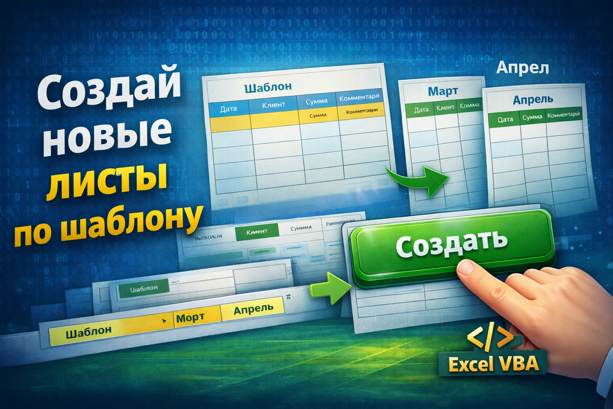 Создай новые листы по шаблону одной кнопкой — VBA, который убирает рутину и хаос в Excel. Как автоматически создавать новые листы по шаблону в Excel с помощью VBA. Готовый макрос, разбор, ошибки, сценарии и настройка под свою работу.