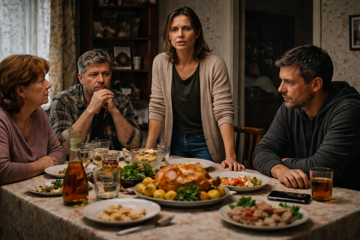 Мы сели за стол. Не идеально. Не по-книжному. Дима всё равно опоздал с тостом и сказал глупость про то, что «главное — чтобы мы все были вместе», от которой я чуть не фыркнула. Мама всё равно обиделась, что я не так нарезала огурцы. Егор сидел в телефоне под столом. Саша зачем-то спорил с Витей про зимнюю резину. Обычный семейный вечер, никакого волшебного выздоровления.