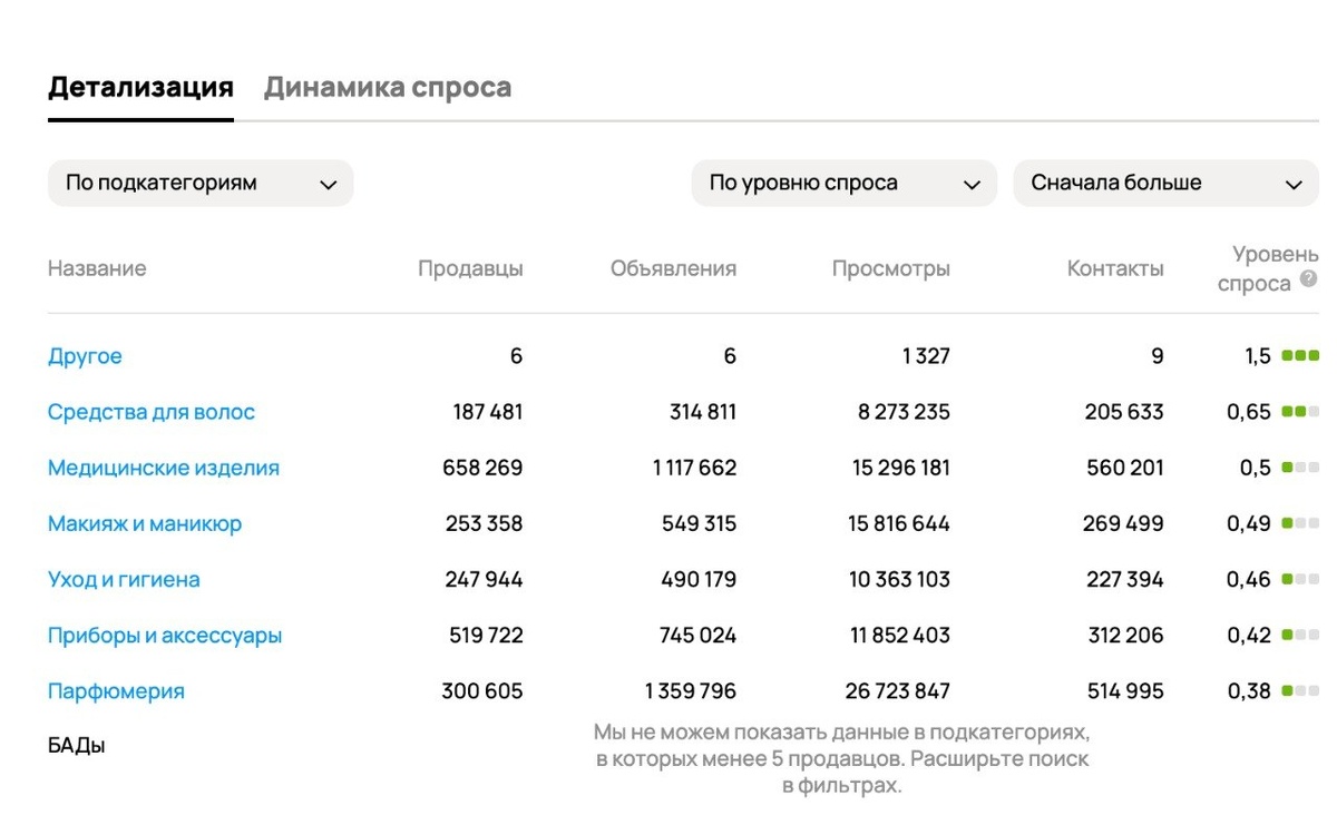 Внутри другой подкатегории из Личных вещей, а именно Красота и здоровье, загадочное "Другое" заняло лидирующие позиции со спросом 1.5 😱 Ну