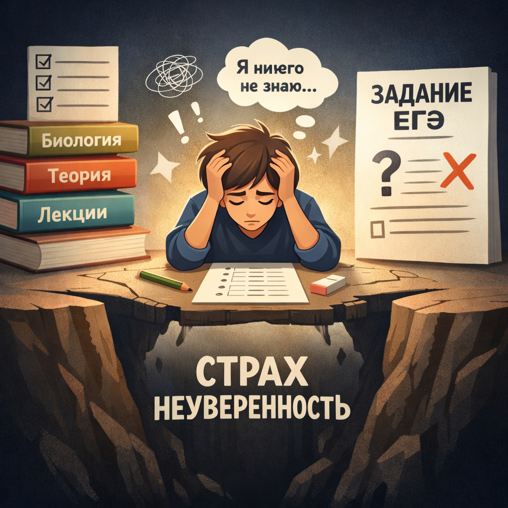 Есть такой затык, в который упираются многие ребята: «я не могу начать решать, пока не выучу всё до конца». И вроде звучит логично. Ну правда, сначала выучить, а уже потом задания. Но по факту происходит другое... _________ Ты сидишь, учишь, читаешь, смотришь вебчики, ходишь на занятия и постоянно ловишь себя на ощущении, что ещё недостаточно. Что ты ещё не готов. Что надо ещё чуть-чуть. И в итоге ты просто не начинаешь решать. И чаще всего ты даже не замечаешь, что тебя стопорит. Кажется, что дело в знаниях. Но на самом деле в страхе. Потому что как только ты садишься решать, ты начинаешь ошибаться. А дальше включается всё остальное: разочарование в себе, мысли «я ничего не знаю», тревога, страх завалить ЕГЭ. И ты такой: ну окей, лучше я ещё поучу. _________ Да, для твоего мозга откладывать встречу с чем-то дискомфортным действительно легче, чем смотреть правде в глаза. Только вот проблема в том, что теория без практики не работает. Вообще. Ты не можешь просто «идеально выучить» биол