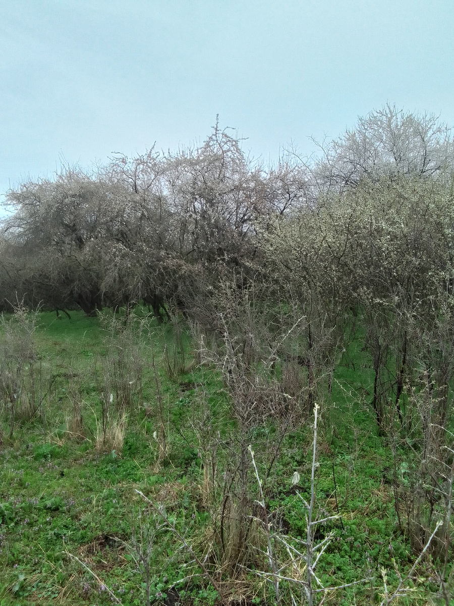 С последнего моего визита к этому месту прошла неделя и многое изменилось. Трава стала выше и зеленее, ветки тёрна и дикой сливы окрасились пышными белыми цветами.