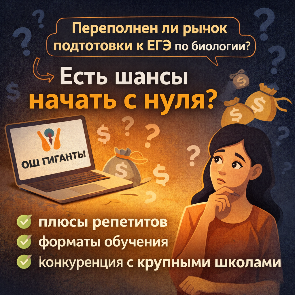 Поступил вопрос: Как Вы считаете: переполнен ли рынок подготовк к ЕГЭ по биологии? Возможно ли добиться успехов, начиная "с нуля"? Как конкурировать с ОШ-гигантами или это бессмысленно и надо заниматься индивидуально? Рынок подготовки к ЕГЭ по биологии, конечно, плотный и насыщенный. Где есть деньги, там всегда много желающих эти деньги забрать. Это база Но есть важный нюанс: на таком рынке всегда очень много некачественных предложений. И онлайн-школ, и репетиторов, которые работают слабо, хватает с головой. Поэтому, если говорить именно про специалистов, которые реально хорошо готовят и качественно делают свою работу, то там конкуренция уже не выглядит какой-то запредельной. Таких людей на самом деле не так уж много. Поэтому да, рынок переполнен. Но жить на нём можно. Если вы качественно работаете, умеете готовить к результату и нормально делаете своё дело, своё место здесь найти реально. Добиться успеха с нуля тоже можно. Естественно, можно. По поводу конкуренции с ОШ-гигантами я