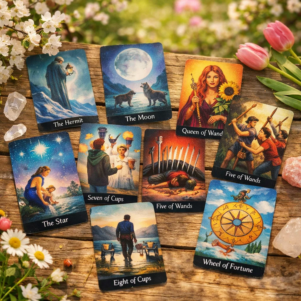 Спасибо каждому за лайки, подписки, комментарии, донаты! 🙏❤️ Вы вдохновляете меня создавать новые расклады и делиться важными посланиями. Пусть всё добро возвращается к вам сторицей! 💖 Сегодня у нас очень сильная, очень глубокая тема. Потому что род — это не просто слово. Это система. Это энергия. Это память. Это защита… и иногда это предупреждение. Давайте сейчас очень честно посмотрим: какой вас видит ваш род прямо сейчас, что он о вас знает, что чувствует и, самое главное, на что хочет открыть вам глаза. Настройтесь на себя. Не на ситуацию, не на человека, а именно на себя. Уберите лишние мысли. И задайте вопрос: какой меня видит мой род? Итак, в раскладе: Отшельник, Луна, Десятка Мечей, Королева Жезлов, Семёрка Кубков, Пятёрка Жезлов, Звезда, Восьмёрка Кубков, Колесо Фортуны. И смотрите, какая здесь идёт история. С самого начала род показывает вас через Отшельника. И это не про слабость. Это про глубину. Вы сейчас человек, который ушёл внутрь себя. Вы анализируете, проживаете, пе