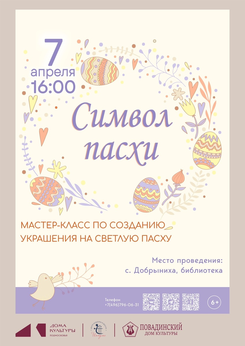 ✨ 🐣 В библиотеке села Добрыниха состоится увлекательный мастер-класс по созданию праздничных украшений к Светлой Пасхе. Мероприятие «Символы Пасхи» подарит участникам возможность своими руками создать неповторимые пасхальные украшения и погрузиться в атмосферу светлого праздника. В ходе мастер-класса все желающие узнают о традиционных пасхальных символах, их значении и истории, а также освоят техники создания праздничного декора. Участники смогут изготовить оригинальные украшения, которые станут прекрасным дополнением к пасхальному столу или послужат душевным подарком для близких. 🐣 🚫 Возраст: 6+ 📆 07.04.2026🕒16:00 🏢 Повадинский сельский дом культуры (СДК) 📍 г.о.Домодедово, с.Вельяминово, 10, Центральная площадь ✅ Мероприятия Домодедово https://dzen.ru/id/66f10385cc4c5a16f7b5fb02 https://vk.ru/domodedovo_events http://dzen.ru/domodedovo_events