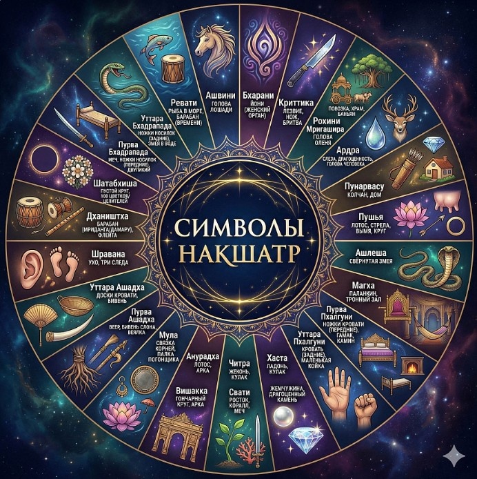 Каждая накшатра имеет уникальный символ, божество-управителя и определённое значение, которое влияет на характер человека, события и карму.