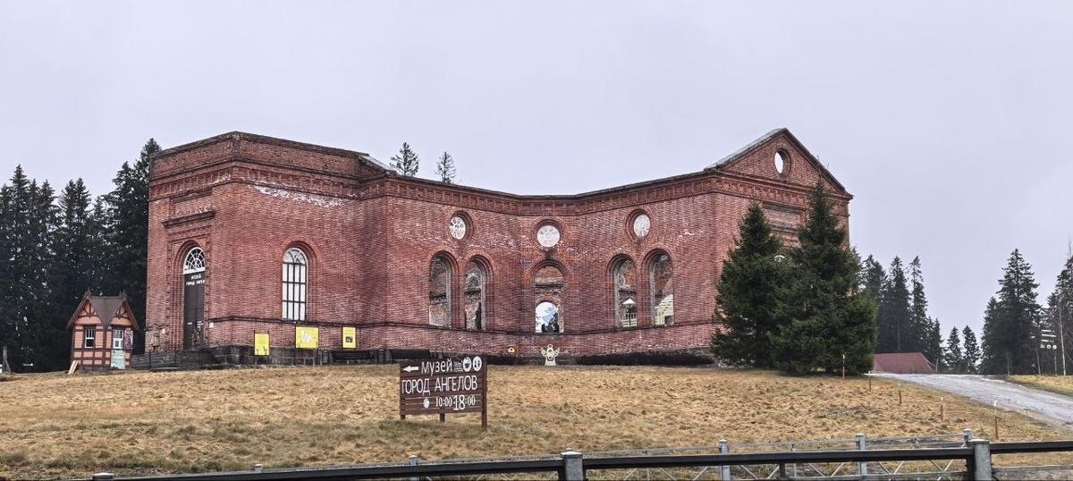 Лахденпохья. Точнее поселка Яккима. По-русски Яккима - Яков. Ну и кирха в честь покровителя поселка - Св. Иакова. Только лютеранского. А какая разница? Ангелы над этим местом, говорят, витали и после разорения в 1945г. Видели! Была на пригорке деревянная, потом опять деревянная. Потом Александр I, который финнам и даровал государственность, велел все государственные здания делать из камня. И начали местные финны собирать деньги. И привлекли известного архитектора Карла Энгеля. Немец, он много чего построил в Польше, Пруссии, был назначен градостроителем Гельсингфорса (Хельсинки) и перестроил город в его нынешнем виде. В 1845г спроектировал эту кирху. Величественное сооружение. После перехода этих земель в СССР, кирха стала клубом, а в 1977 сгорела и так стояла разрушенная. В 2019 вокруг ее руин провели фестиваль деревянной скульптуры. И с тех пор тут поселились вот эти ангелы. Возможно, те, что и витали над руинами. К 2030 обещают закончить ремонт. И далее восстановить колокольню. #di