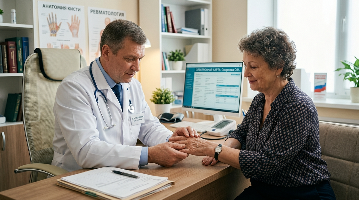 Пришла на прием не одна, а вместе с невесткой. Знаете, всегда радует такое теплое отношение в семье, когда молодые искренне заботятся о старших, помогают разобраться в сложных медицинских выписках и не отмахиваются от проблем. Невестка переживала, что свекровь стала прятать руки, стесняется играть с младшим внуком, потому что кожа стала шершавой, покрылась жесткими мелкими пупырышками.