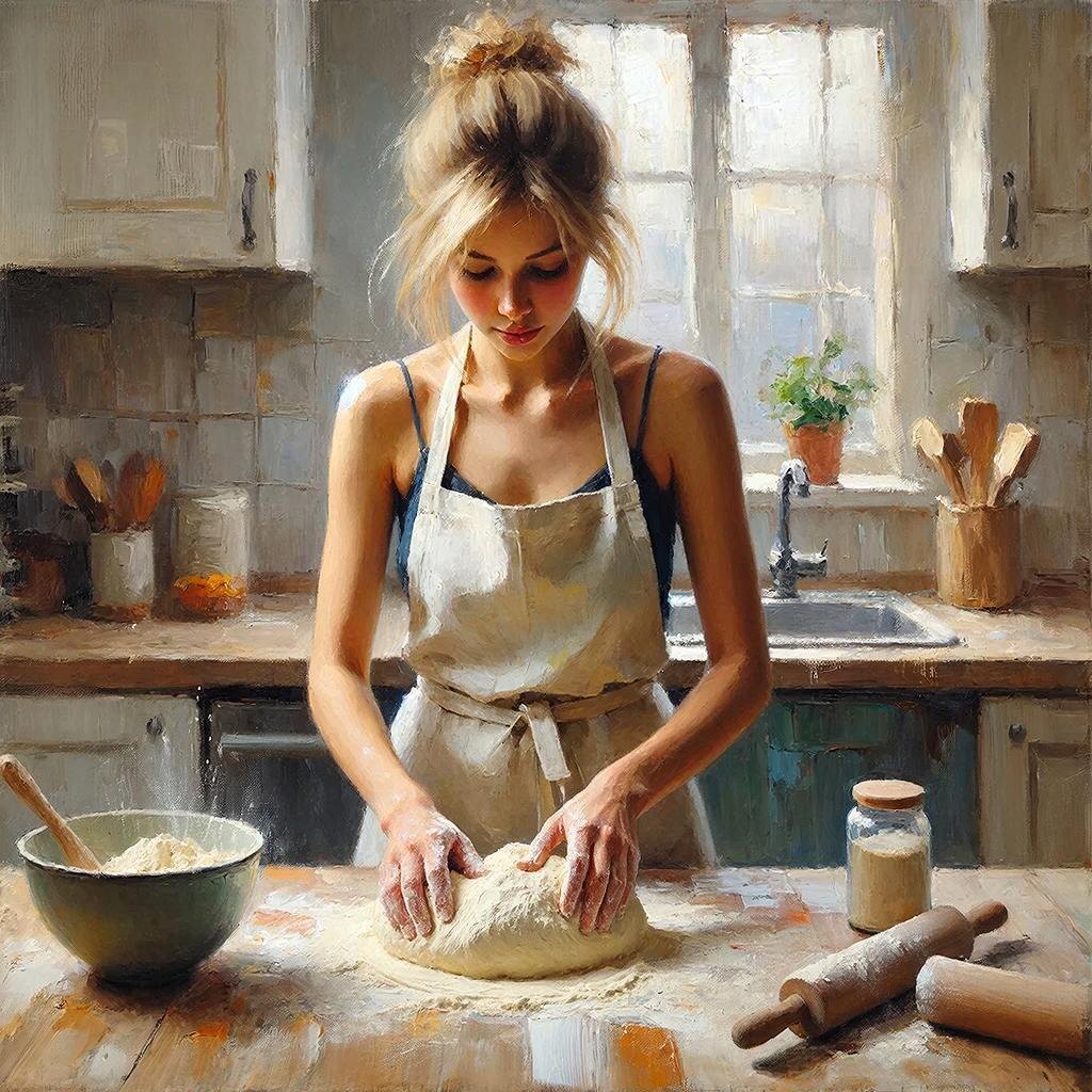 Эмма почувствовала, как её сердце забилось быстрее. Она готова была приступить к делу. Кухня Эммы превратилась в настоящую лабораторию. На столешнице выстроились миски, мерные стаканы, две упаковки охлаждённого мяса, луковицы, перец и соль. Она надела льняной фартук, аккуратно собрала волосы в высокий хвост, чтобы ничего не мешало, и начала замешивать тесто.