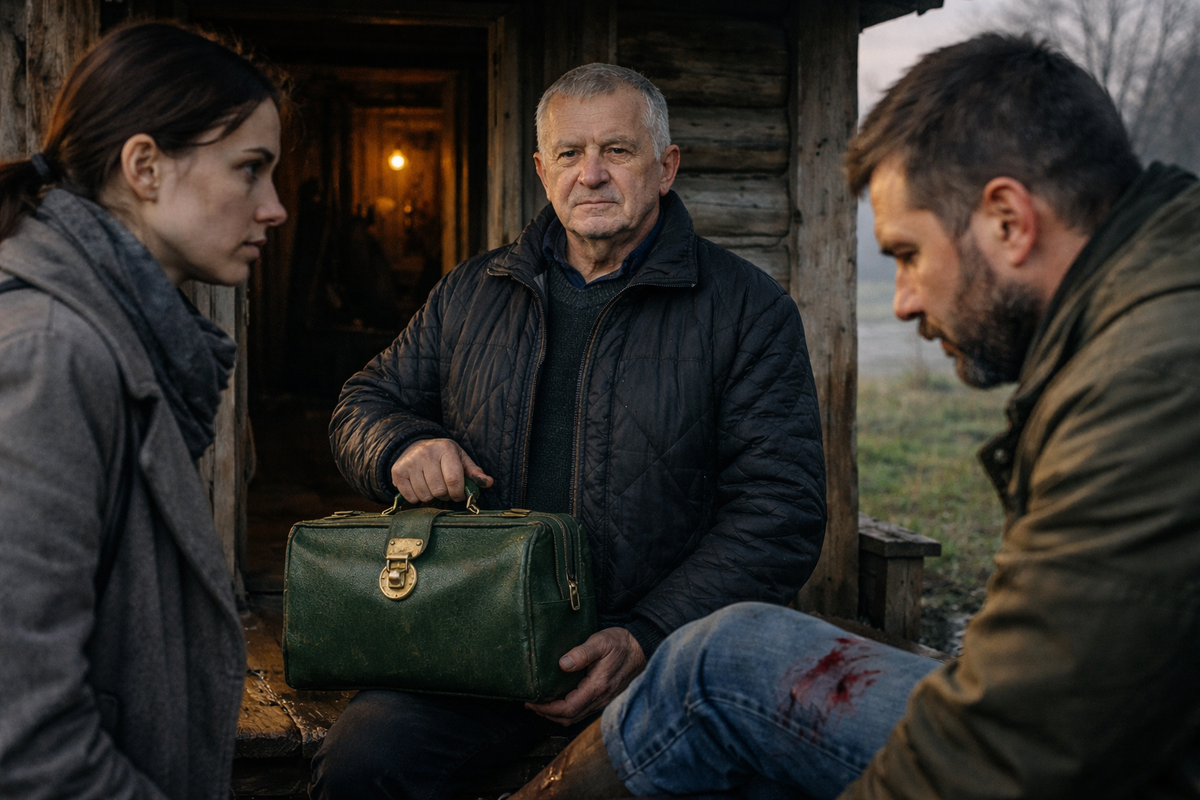 Дождь шёл с ночи, мелкий, настойчивый, и весь двор блестел так, словно кто-то ещё до рассвета облил его ведром холодной воды. На крыльце темнел зелёный чемоданчик с латунной застёжкой, в сенях пахло йодом, сушёной мятой и старым деревом, а у стены мокла чужая обувь. Аркадий Петрович стоял в дверях в тёмной ватной куртке, с голой седой головой, с привычным спокойным лицом, на котором только левая бровь, рассечённая давним шрамом, всегда будто держала отдельную мысль.