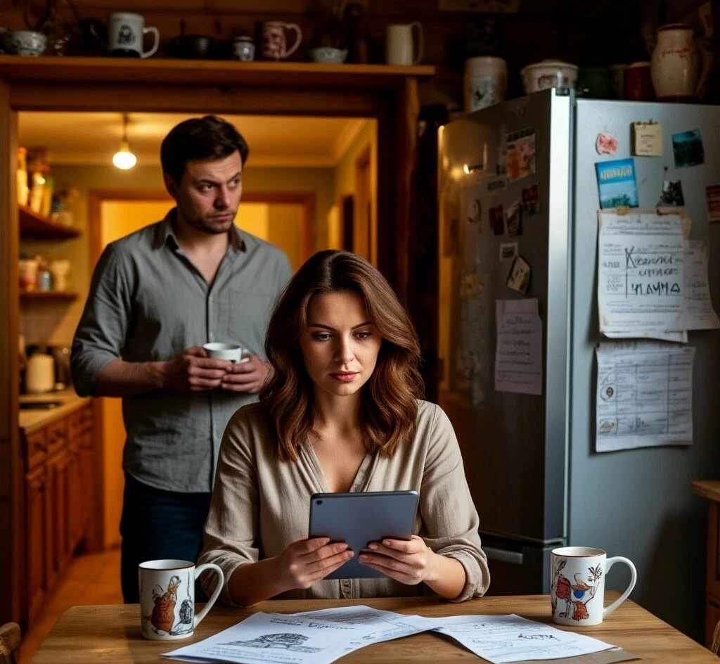 Катя сидела за столом с планшетом. Медленно подняла глаза. На её лице появилась улыбка — спокойная, почти страшная. Муж замер. Он не помнил, чтобы она так улыбалась.