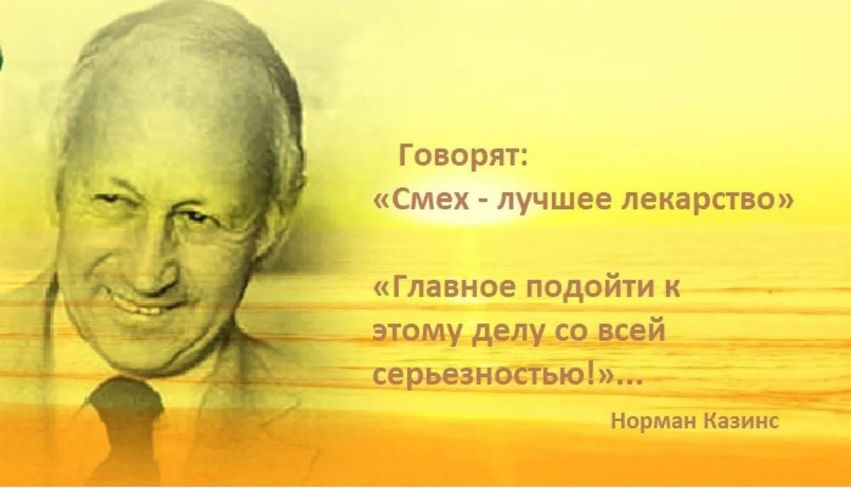 Как специалист по смехотерапии, могу ответственно заявить, что смех лечит любые болезни. В подтверждение хочу вам рассказать об удивительном документально подтвержденном случае - реальном исцелении от смеха. Представьте: вам говорят, что вы — один из 500 больных, из которых выживает только один. Ваше тело не двигается, челюсти сводит, врачи разводят руками. Что делать? Норман Казинс выбрал… смеяться. В 1964 году журналист, дипломат и борец за мир оказался в ловушке собственного тела: коллагеноз + анкилозирующий спондилит сделали его практически неподвижным. Лекарства не помогали. Тогда он вспомнил: отрицательные эмоции угнетают иммунитет, а положительные — могут стать лекарством. Казинс выписался из клиники (к ужасу врачей), поселился в отеле и устроил себе кинотеатр. Сиделка крутила комедии, читала анекдоты. Поначалу он угрюмо усмехался, но постепенно начал хохотать до слёз. ✨И случилось чудо: 1️⃣10 минут смеха = 2 часа сна без боли 2️⃣Анализы крови после сеансов показывали сни