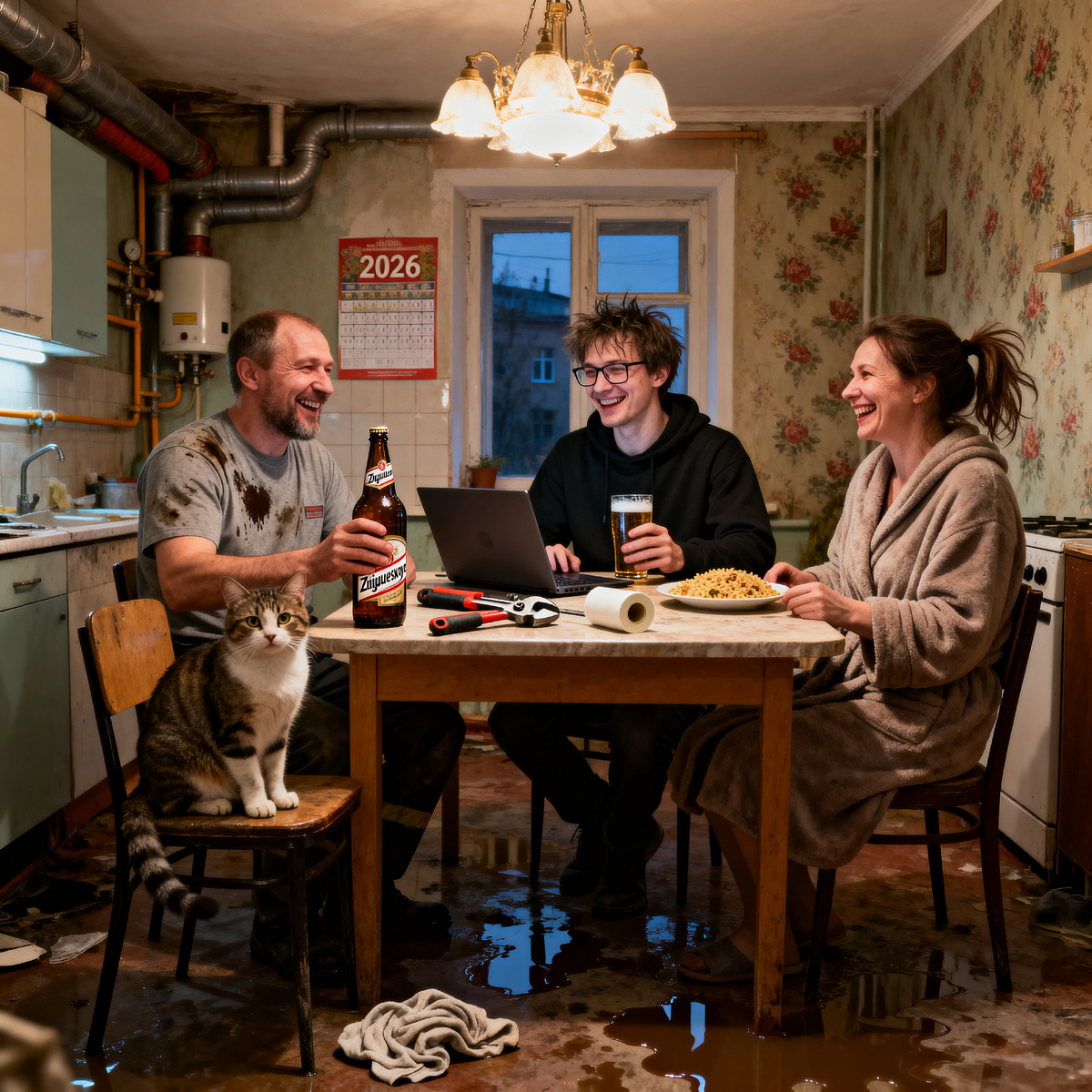 Мы продали ту комнату. Деньги пришли. Долг закрыли. Тимур нашёл новую работу — уже здесь, в нашем городе, в маленькой IT-компании, которая делает приложения для ЖЭКов. Ирония, да? Теперь он пишет программу, чтобы трубы автоматически фиксировать по жалобам. Я его тестирую: «Слышь, сын, у меня в подвале снова течёт — добавь в код матерные жалобы».