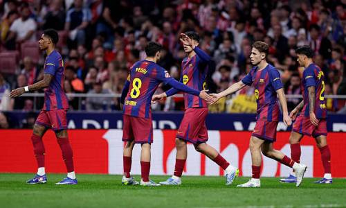 Мадридский «Атлетико» и «Барселона» сыграли в матче 30-го тура испанской Ла Лиги, сообщает Sports.kz. Встреча прошла на стадионе «Сивитас Метрополитано», обслуживала ее судейская бригада во главе с Матео Бускетсом Ферреро. Стартовые составы команд выглядели следующим образом: «Атлетико»: Муссо, Молина, Ле Норман, Лангле, Коке, Варгас, Гонсалес, Альмада, Симеоне, Гризманн, Баэна; «Барселона»: Жоан Гарсия, Кубарси, Мартин, Канселу, Эрик Гарсия, Араухо, Ямаль, Фермин Лопес, Педри, Ольмо, Рашфорд. На 39-й минуте счет открыл Джулиано Симеоне, но через три его сравнял Маркус Рашфорд, а перед перерывом на седьмой компенсированной удаление получил Николас Гонсалес. Во второй половине «Барселоне» удалось вырвать победу на 88-й, когда грудью гол забил Роберт Левандовски — 2:1. Теперь у «Барселоны» 76 очков, и она на семь опережает мадридский «Реал», «Атлетико» идет четвертым с 57 баллами. ФК «Атлетико» Мадрид
