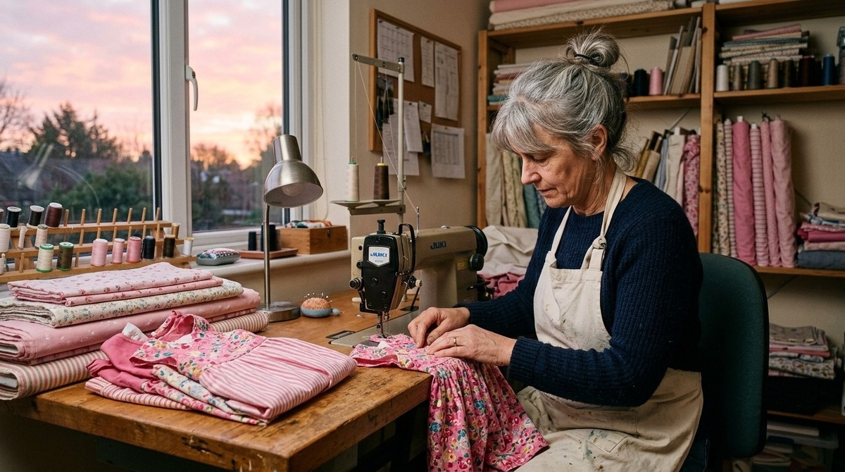 Руки двигаются ровно. Строчка ложится на строчку. Пахнет хлопком и утюгом.