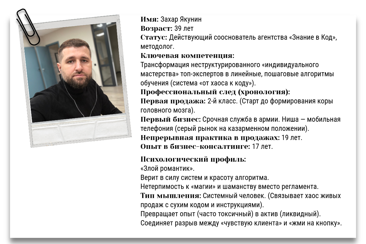Меня зовут Захар Якунин. Возвращаю своих клентов в кресло собственника. Забираю на себя админку и хаос.