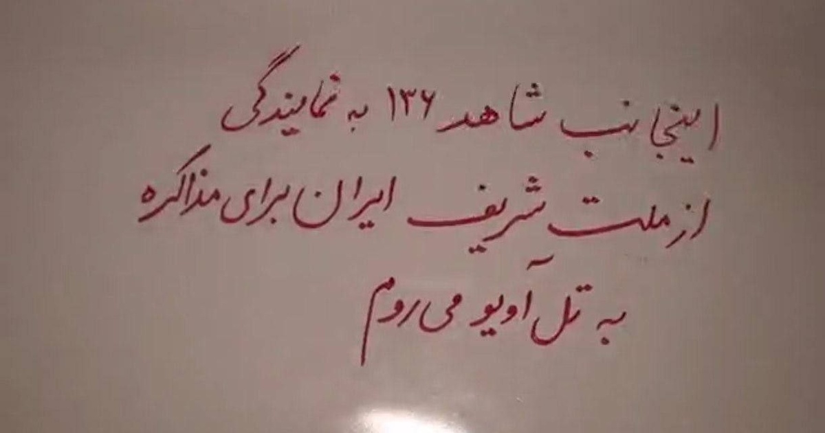 Текст на иранском дроне: "Я, Шахед-136, от имени иранского народа, отправляюсь в Тель-Авив для переговоров