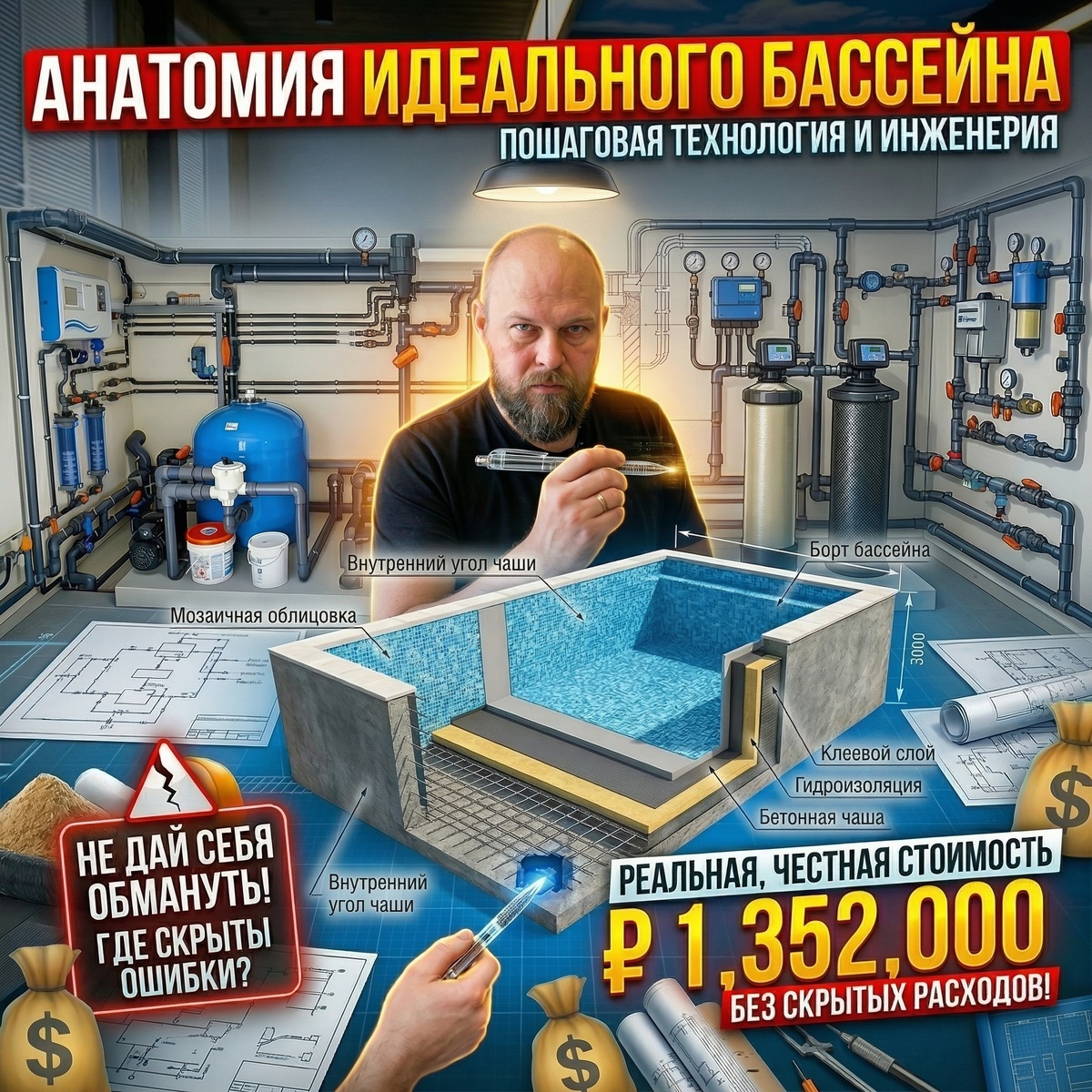 Многие мечтают построить собственный тёплый бассейн в загородном доме, представляя себе лишь красивую картинку с голубой водой. Однако за этой эстетикой скрывается сложнейшее капитальное инженерное сооружение. Бассейн — это не просто выкопанная яма, облицованная плиткой. Это многотонная гидротехническая конструкция, которая требует скрупулезных расчетов, непрерывного бетонирования, многослойной химии и умной автоматики.