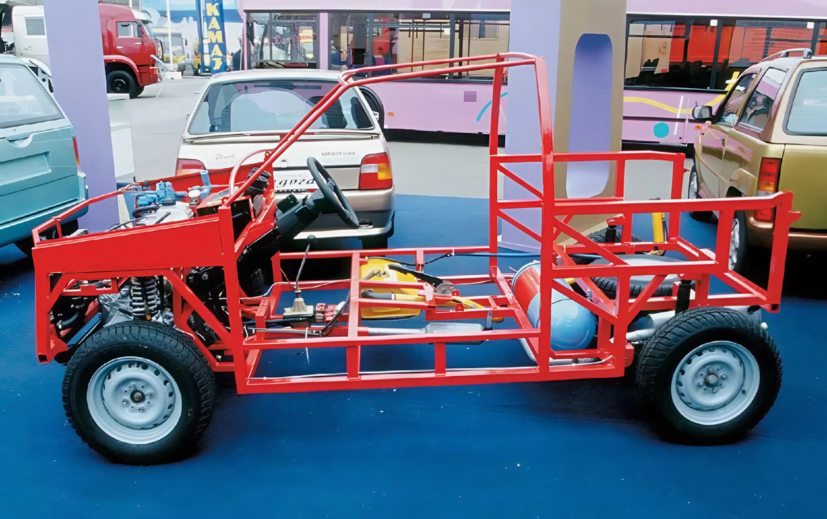 Началось всё в конце 1997 года, когда компания "Автосельхозмаш-холдинг" - наследник советского министерства, оставшийся без дела после распада СССР, решила сделать дешёвый микроавтомобиль. К работе подключили НАМИ и американскую фирму Venture Industries, которая работала в сфере различных пластиков. Задумали два варианта. "Мотокар" с мотором 25-35 л.с. - для тех, у кого есть права мотоциклиста. И "Юникар" с мотором 5-6 л.с. - для тех, у кого вообще нет в/у. Вот эта вторая версия и была главной приманкой: садишься и едешь, как на велосипеде, только с крышей. Конструкция была простейшей. Пространственный каркас из стальных труб, обшитый пластиковыми панелями. Никакого сварочного производства, никакой покраски кузова - панели просто навешивались на раму. Получилась машина чуть крупнее "Оки": длина 3330 мм, ширина 1575 мм. Первый образец собрали в 1998 году на агрегатах той же "Оки" с её 33-сильным мотором. И тут грянул дефолт 1998-го, который заморозил проект. Но через несколько лет "Миш